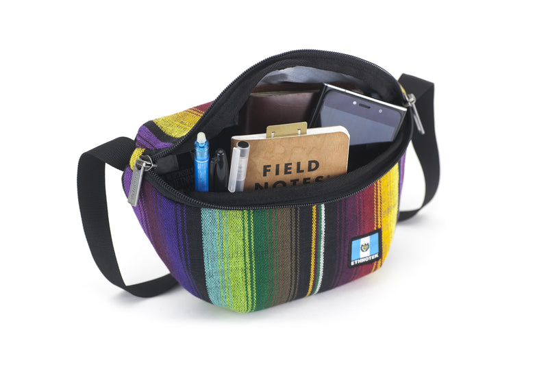 The Bagus Bum Bag is a teched-out Fanny Pack for travel to secure valuables close to the body. Convenient and practical, it can be easily worn over the shoulder or as a cycling waist-belt. With the maximum comfort and wearability. the bum bag is also ideal for music festivals, walking or hiking. The back surface is water-resistant 840-denier ballistic nylon and has a discrete zip pocket for passport, cash or travel documents. The bum bag has a main zipper compartment lined with water-resistant rip-stop lining and a built-in zipper mesh pocket and keychain clip.