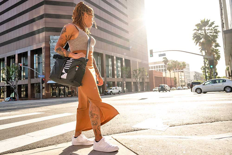 The Laptop Sling Bag can be worn by a dual-adjusting seatbelt nylon shoulder strap with removable shoulder pad. It’s designed to be comfortable on left and right-handed wearers and fits all body types. The strap also has a cross-body connector strap that is great for when the bag is worn high on the back to prevent the bag from swinging around to the front when cycling or tying your shoes.