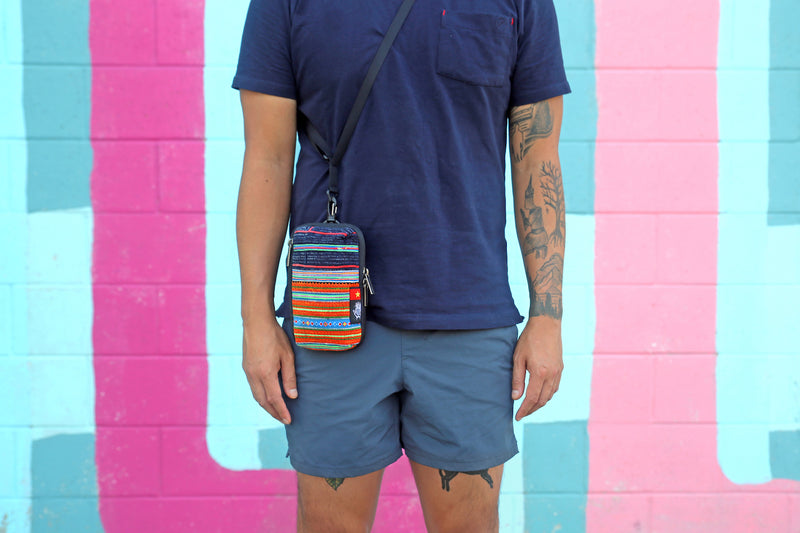 The Pindah Phone Pouch is the ideal companion for backpackers and urban commuters. It’s scaled to fit iPhone 13 Pro Max and other Android smart phones of similar size. The Strap & Clip system on the back is ideal for attaching to all Ethnotek backpack shoulder straps so your pockets are free and the phone can be accessed easily and quickly. The pouch also has a zipper pocket on the front to fit, sunglasses, lip balm, passport, keys and other small accessories.