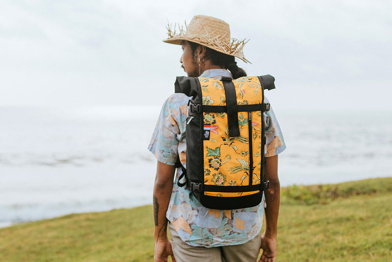 The Raja Lite Rolltop Backpack is purpose built for the daily commute, a weekend camping trip, and the occasional cross-continental journey of self-discovery. It’s built from recycled 600d PET fabric that is water resistant. The Raja Lite Rolltop Backpack is laptop compatible and fits 13" - 15" MacBook Pro & most 13 - 15" PC Laptops. The giant roll top main compartment gives maximum access and is lined with water resistant ripstop nylon for an extra layer of protection from the elements. Support artisans and the planet in style!