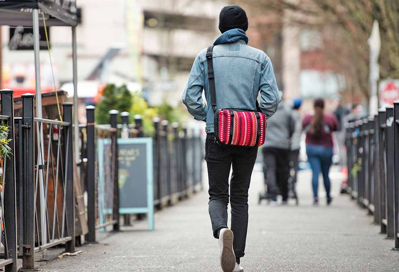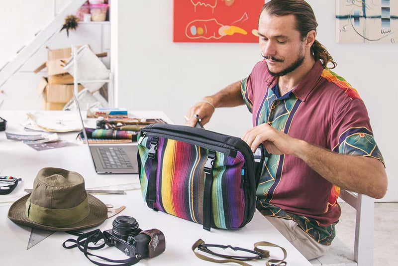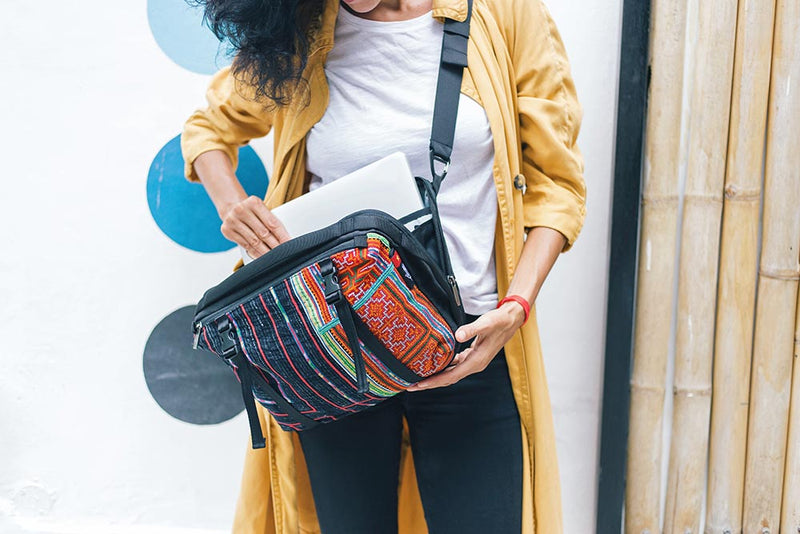 To complete the package, the front panel features handmade artisan fabric and the bags exterior is water-resistant PET that is made from 100% recycled plastic bottles. This is one of the most eco-friendly and socially responsible mini laptop bags on the market!
